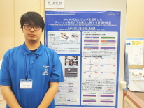 M1の平井さんが「通電摩擦下の水膜厚さによる損耗状態とAE周波数の変化」(右写真),長谷が「回転軸AEセンシングによる転がり疲労損傷のin situ計測・診断」および「AEセンシングを活用した水草のダイナミクスその場計測」について口頭発表を行いました.多くの方々にご質問やコメントをいただくことができました.ありがとうございました.
