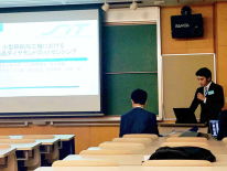 M1の平井さんが「球体が介在した摺動面のin situ観察とAEセンシング」について講演発表しました(左下写真).また,B4の小根澤さんが三星ダイヤモンド工業との共同研究成果「単結晶ダイヤモンド研削加工におけるAEセンシング」について講演発表しました(右下写真).