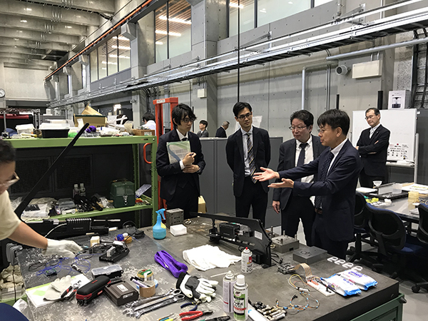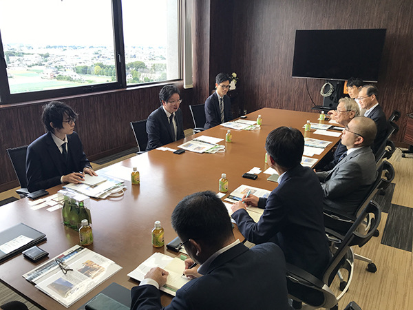 はじめに行われた意見交換では、地域連携の円滑な推進や自治体との良好な連携構築のありかたや、地元企業との活発な連携推進に関する取り組みなどについて本学の自動運転バスの取り組みを例にしてご説明をさせていただきました。また、今後の社会需要に合わせた理工系分野の学生をどのように増やし、育てていくかについても議論をさせて頂きました。その後、学内見学では、ものづくり研究棟で展開されている「レドックスフロー電池」の実験の様子や、クリーンエネルギー技術開発センターの取り組みでもある「深谷ねぎ」の出荷時に廃棄される葉を原料に用いた実用的なバイオプラスチックの製造技術などをご覧いただきました。