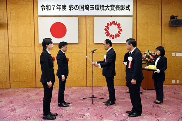 彩の国埼玉環境大賞は、脱炭素・循環型社会の実現につながる活動や、身近な自然の保全活動などを行う個人、団体、事業者等を表彰し、その功績をたたえるものです。