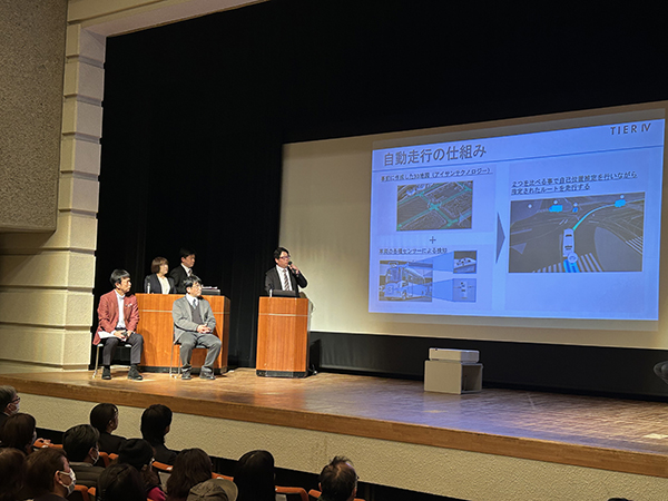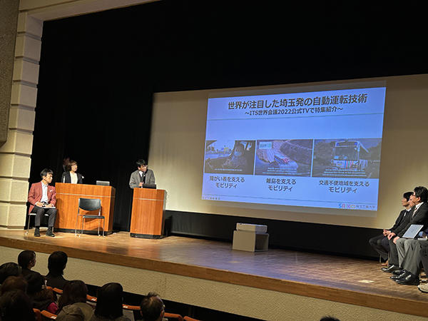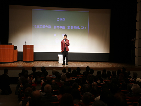 ・埼玉工業大学 自動運転技術開発センター長 渡部教授からは、埼工大の自動運転の技術や、深谷自動運転実装コンソーシアムの経緯、北部シャトル便について説明があり、「バスのファンを作ること。公共交通がないと街も健康も失われる。」というメッセージがございました。