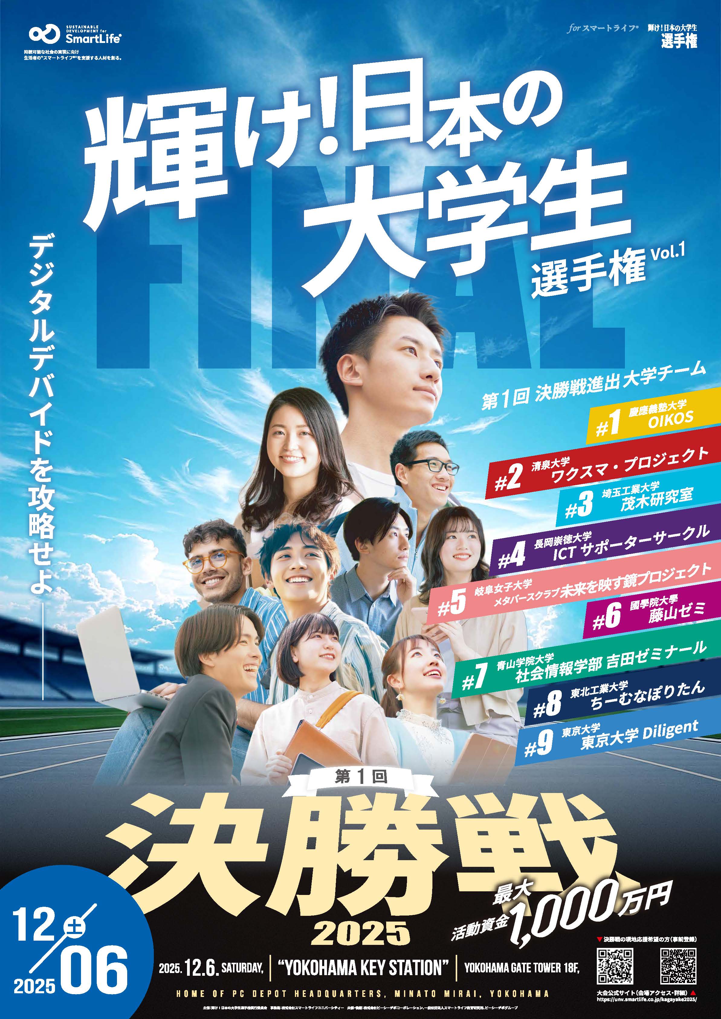 本選手権は「持続可能な社会の実現に向け、生活者の“スマートライフ”を支援する人材2万人創出プロジェクト」の一環として開催されています。デジタルデバイドが招く社会的断絶の解消に向けた “リアルなミッション”に学生たちが主体的に取り組むことで、若者の力が社会を変える原動力となり「デジタル化しても“若者がいるからみんな大丈夫”な社会」を築くことを目指しています。