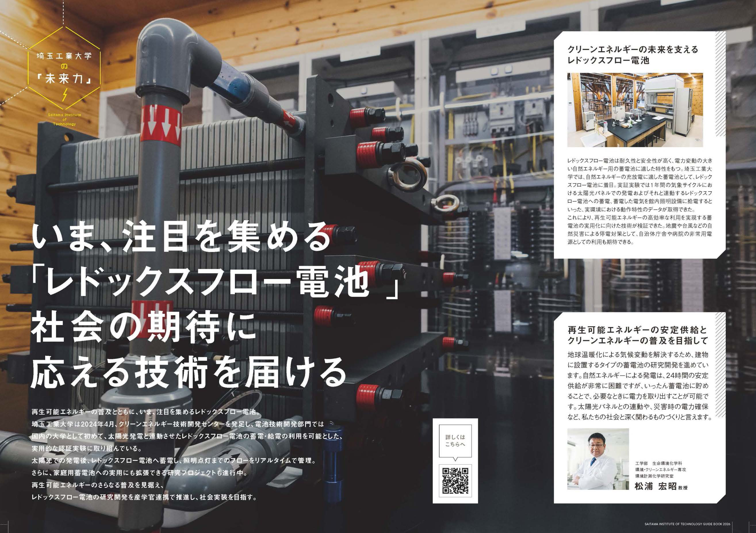 11月14日(金)付、 日本経済新聞に <埼玉工大の「発火しない蓄電池」> の見出しで、工学部 生命環境化学科 松浦宏昭教授が再生可能エネルギーの安定供給と、クリーンエネルギーの普及を目指して研究を進める「レドックスフロー電池」の最新の取り組みが紹介されました。