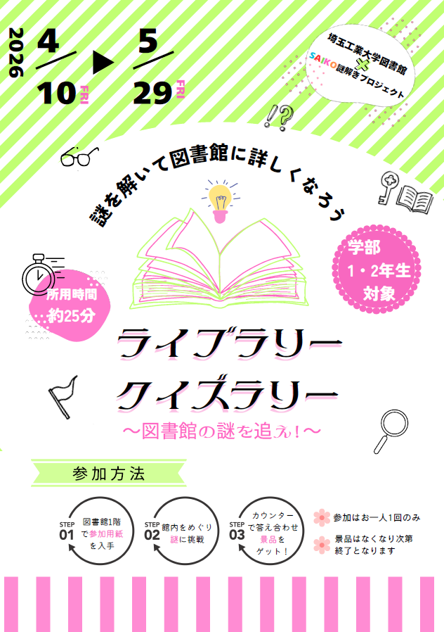 「ライブラリー クイズラリー ~図書館の謎を追え!~」開催のお知らせ
