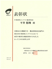 • 埼玉工業大学第22回若手研究フォーラムにて当研究室M2の小沢さんが優秀賞を受賞(Aug. 8th, 2024)