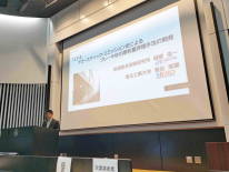 M1の平井さんが「球体が介在した摺動面のin situ観察とAEセンシング」について講演発表しました(左下写真).また,B4の小根澤さんが三星ダイヤモンド工業との共同研究成果「単結晶ダイヤモンド研削加工におけるAEセンシング」について講演発表しました(右下写真).